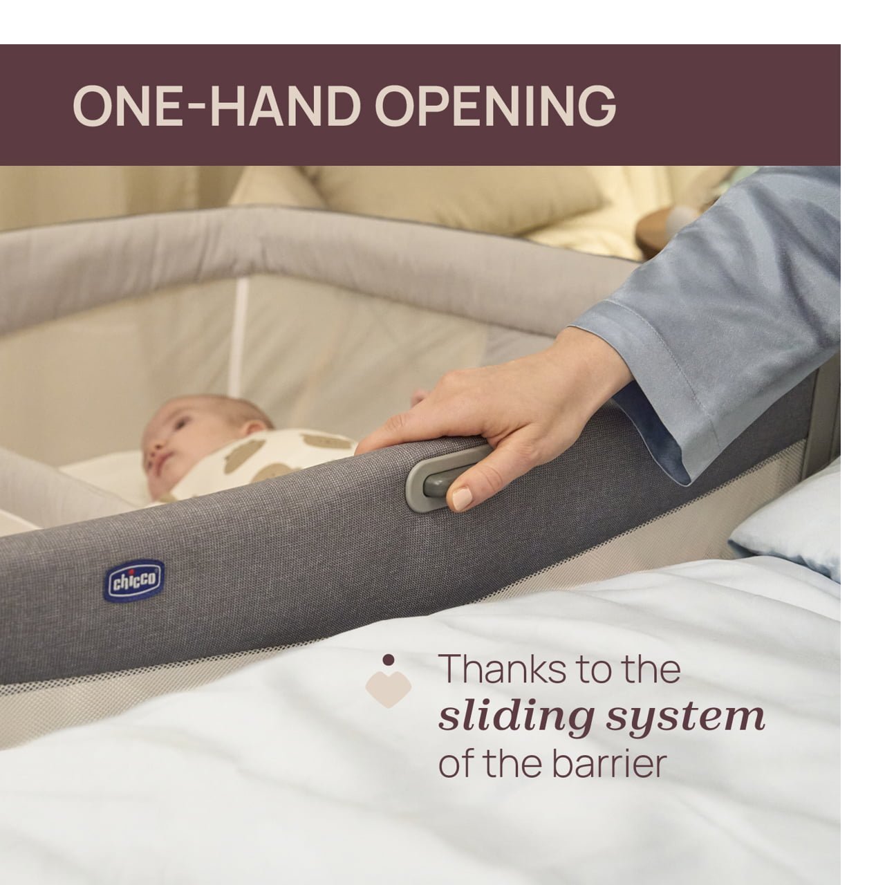 - SystĂšme de barriĂšre coulissante qui s’ouvre et se ferme facilement d’une seule main et offre aux parents un accĂšs simultanĂ© aux 2 enfants.