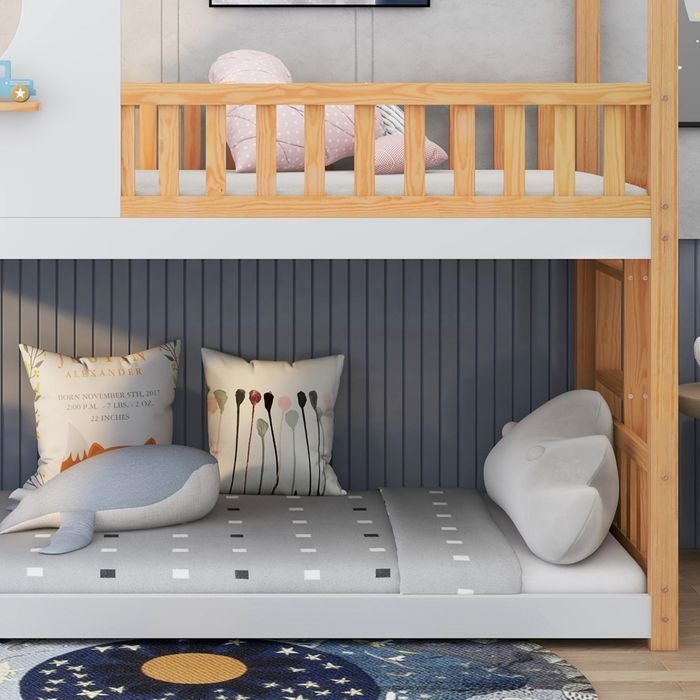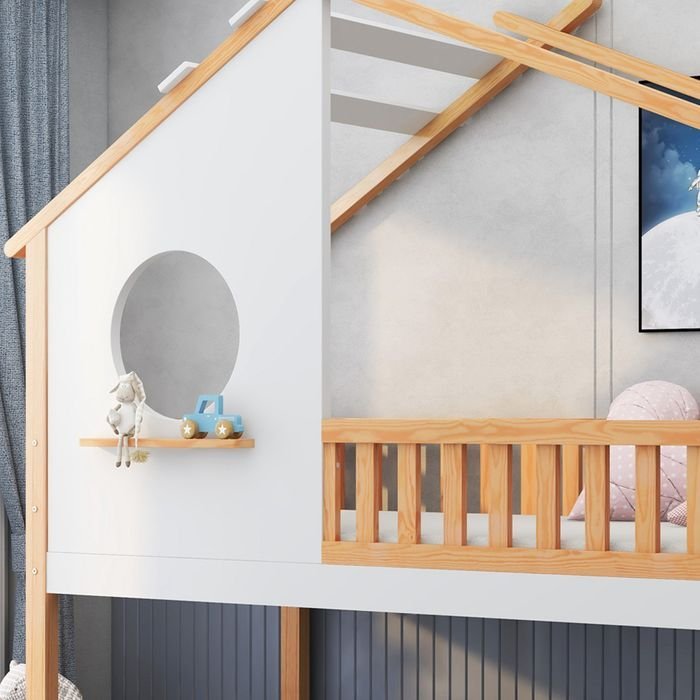 Lit superposé classique. Le lit superposé est conçu pour économiser de l’espace et constitue un bon choix pour les familles avec deux enfants.lit unique sur le toit en pente. Le lit supérieur est conçu avec un toit en pente et est plein d’art. La fenêtre circulaire creuse en mdf d’un côté est très intéressante, et la petite latte courte à l’extérieur permet de placer temporairement de petits objets pour les enfants. Il y a deux panneaux décoratifs en mdf sur la ferme de toit, vous pouvez ajouter un peu de décoration sur le dessus du lit selon les préférences de l’enfant, ce qui est un design amusant et adapté aux enfants.correspondance des couleurs unique. L’ensemble du cadre du lit est dans une couleur naturelle classique, les poutres sur le dessus du lit, les panneaux de fenêtre et les parties latérales du lit sont en blanc frais. L’association des deux couleurs est harmonieuse et pleine de caractère.structure stable. Le cadre en bois de pin et les épaisses fenêtres en mdf rendent le lit plus stable. La structure du dessus de lit est appréciée des enfants et stabilise la structure de l’ensemble du lit.mesures de sécurité. Des clôtures robustes et sécurisées sur tous les côtés du lit protègent les enfants des chutes. L’échelle rectangulaire est solidement fixée au côté du lit. La petite échelle à 3 marches est simple et sécuritaire pour les enfants.respectueuse de l’environnement. Le pin certifié fsc est solide, sûr et adapté aux enfants, ce qui peut favoriser le développement durable.lit cabane, lit superposé avec échelle à angle droit, lit enfant, naturel, blanc (200x90cm)avec une maison amusante et un beau design de fenêtre. Ce lit superposé blanc et naturel attire l’attention des enfants.des rampes de sécurité et un escalier à angle droit à trois marches offrent une sécurité supplémentaire aux enfants, ce qui en fait un choix sûr pour une variété de chambres !points de vente1. Conception de lits superposés peu encombrants2. Garde-corps à quatre côtés sûr et fiable3. Structure en pin robuste4. Toit en pente intéressant et fenêtre ronde creuse5. Échelle à angle droit à 3 marches simple et sûre6. Convient à différents styles de décoration7. Un superbe cadeaupoids et dimensionstaille totale209x96x228cmpoids total56kgdistance entre deux lits85cm matelas assortis (le lit ne contient pas de matelas.)200x90cmcapacité de charge100kgcaractéristiquesnom du produit br>lit superposé lit cabanecouleurnaturel, blancmatériau du cadrepin+mdfmatériau des lattesboisméthode d’assemblageinstallez-vous numéro de colis3pays d’originechineremarquece produit contient 3 colis. Il est normal que 3 colis soient livrés à des moments différents,