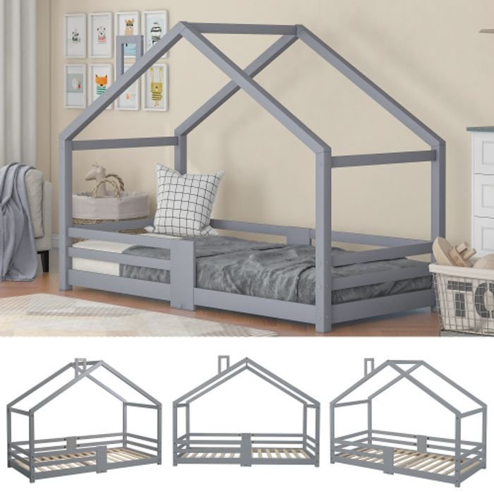 Lit cabane Maison 90 x 200cm Gris